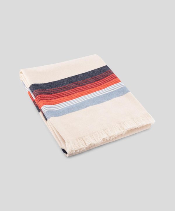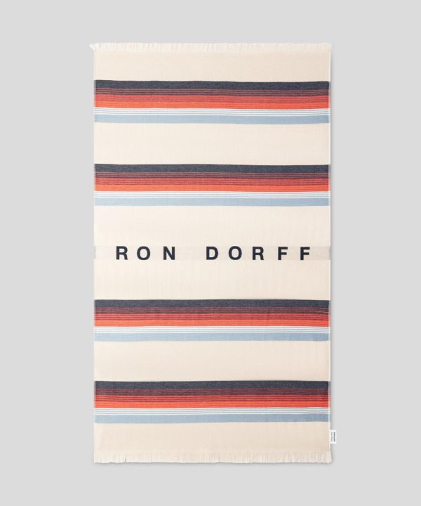 A fouta with RON DORFF logo and western-inspired stripes. Ideal for summer days by the pool or sea. Size to fit the body (100cm x 170cm) and made from 100% cotton, one side woven and one side fine terry for added comfort. Small and ideal to take with you wherever you go.