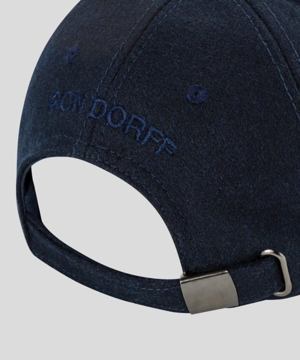 The classic RD coach cap upgraded in soft wool in time for fall. RON DORFF embroidered on back. Adjustable strap with metal fastener. Only sign of recognition, two discrete black-lacquered RD eyelets on the side.