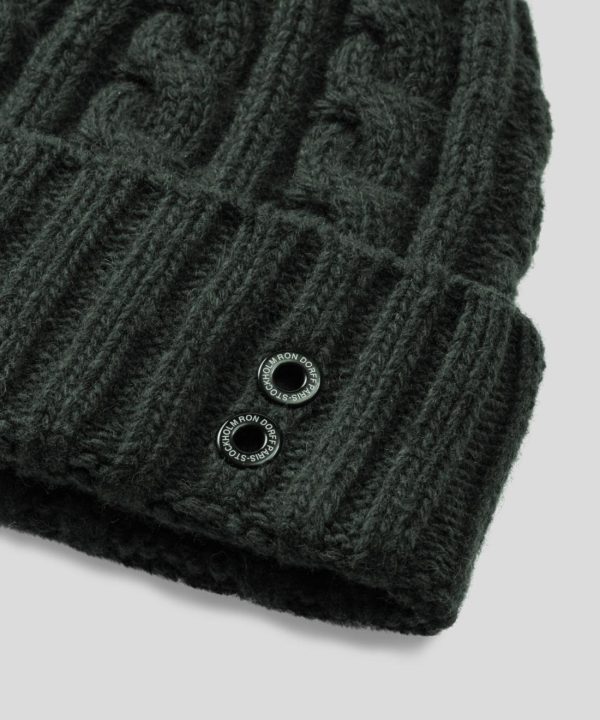 The RD winter must-have accessory, the Nordic Ski beanie in ultra-soft, breathable mix of wool and pure sports cashmere. Featuring a cable-knit construction and finished with a ribbed folding. Featuring the double, black-lacquered RD eyelets on the side.
