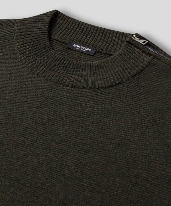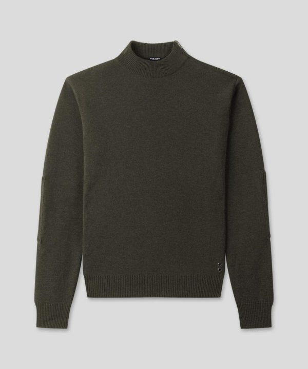 The new sweater RD, knitted from 100% extra-fine merino wool, reinterprets military style with a chic touch. It stands out with its mock neck, shoulder zip, and tone-on-tone elbow patches. Only signs of recognition, two discrete black-lacquered RD eyelets.