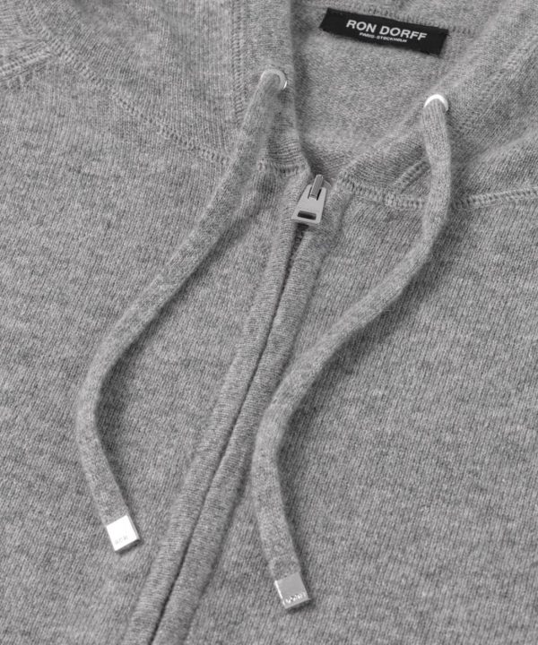 The classic zipped pullover hoodie with front pockets upgraded in a luxurious, 100% ultra-soft, breathable, Pure Sports Cashmere. Designed with a slightly tapered fit. Drawstrings with RD engraved metal tips for perfect adjustment. Swiss-made, anti-tear zip with RON DORFF engraved puller. Finished with ribbed cuffs and waistband. Featuring the two discrete black-lacquered RD eyelets on the side.