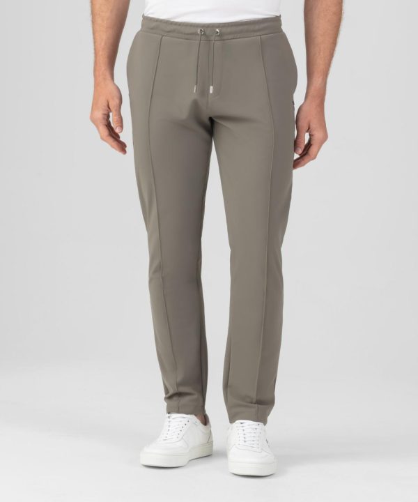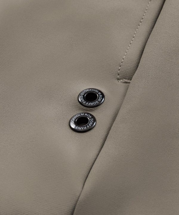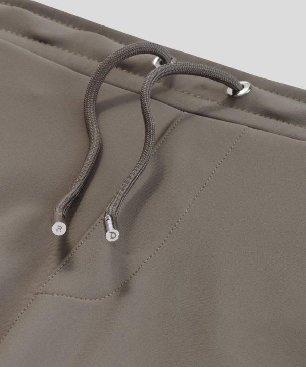 Chic city pants upgraded in an ultra-resistant, breathable, stretch fabric. Made in a high-tech mix of light nylon and spandex©. Designed with a straight, classic fit with frontleg stitching, elastic waistband and adjustable drawstrings with RD engraved metal tips. Two back pockets. Featuring the two discrete black-lacquered RD eyelets on the side.