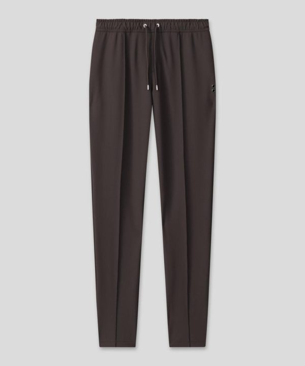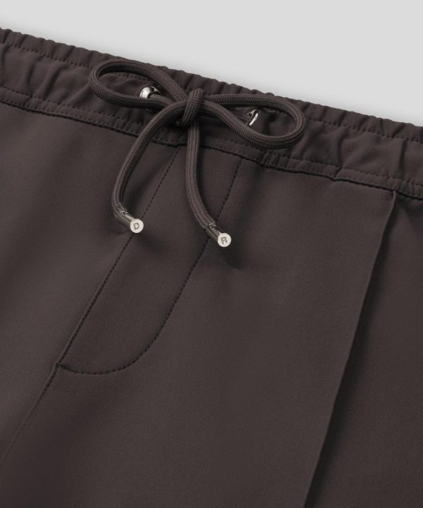 Chic city pants upgraded in an ultra-resistant, breathable, stretch fabric. Made in a high-tech mix of light nylon and spandex©. Designed with a straight, classic fit with front leg stitching, elastic waistband and adjustable drawstrings with RD engraved metal tips. Two back pockets. Featuring the two discrete black-lacquered RD eyelets on the side.
