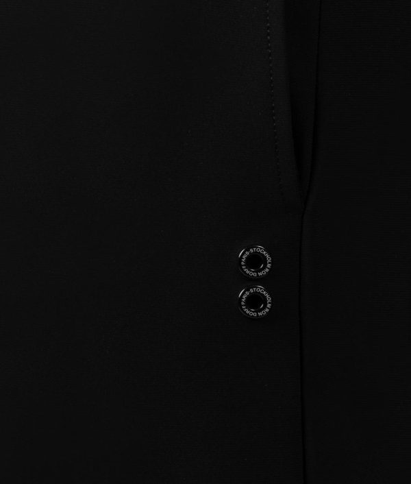 Chic city pants upgraded in an ultra-resistant, breathable, stretch fabric. Made in a high-tech mix of light nylon and spandex©. Designed with a straight, classic fit with front leg stitching, elastic waistband and adjustable drawstrings with RD engraved metal tips. Two back pockets. Featuring the two discrete black-lacquered RD eyelets on the side.