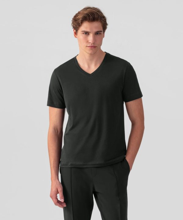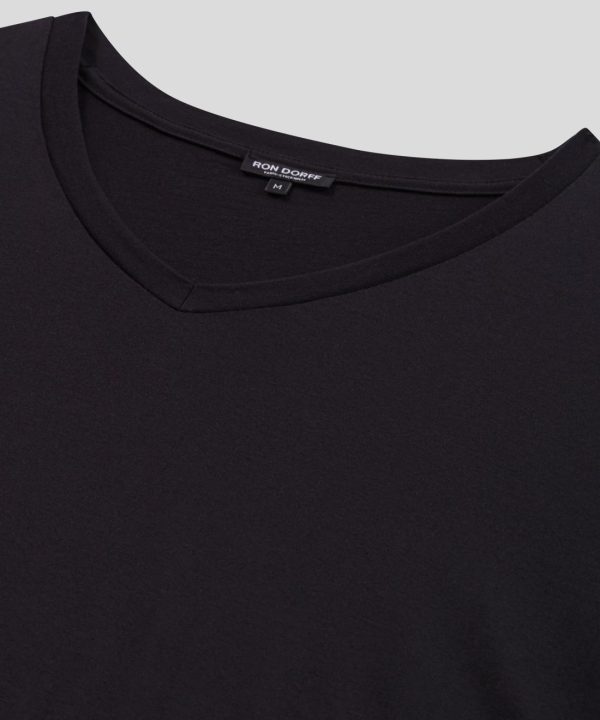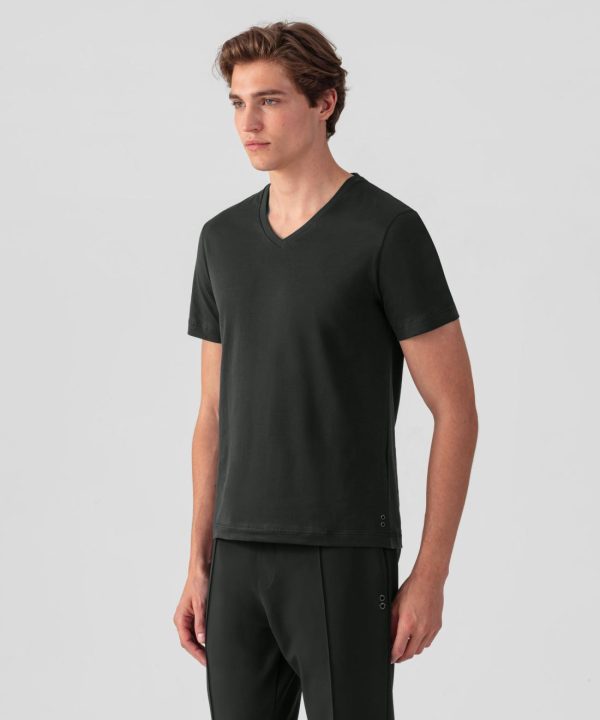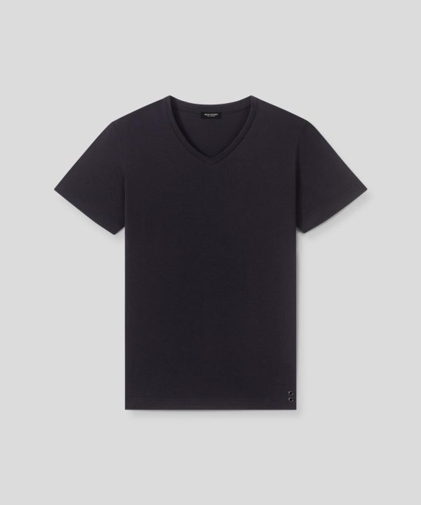 The new no frills, no logo, RD t-shirt upgraded in 100% ultra-soft cotton. Designed with a slightly tapered fit. V neck with elegant binding collar for chic urban wear. Featuring the double black-lacquered RD signature eyelets on the side.