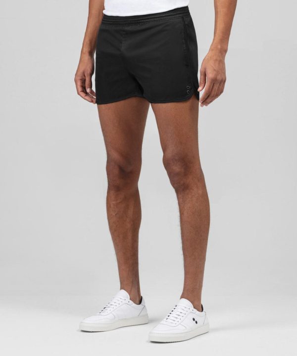 This new version of the classic RD exerciser shorts comes with the typical rounded side slits of the early 80s. Designed with a slightly tapered fit and short legs for an enhanced silhouette. Cut in highly-resistant and breathable polyester with a light micro-mesh lining. Feature a comfortable elastic waistband with adjustable drawstring, two side pockets and those cult side slits for optimal movement. The two discrete black-lacquered RD eyelets on the side.
