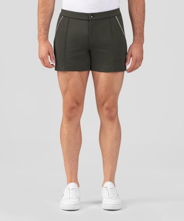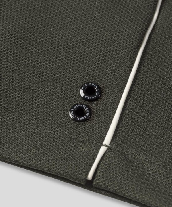 The cult tennis shorts of the early 80s as worn by Björn Borg, Jimmy Connors and John McEnroe. Designed with a slightly tapered fit with side slits. Cut in a breathable, stretch polyester with a hint of elastane. White piping on the side. RON DORFF engraved button and two side pockets. No back pockets. Featuring the two discrete black-lacquered RON DORFF eyelets on the side.