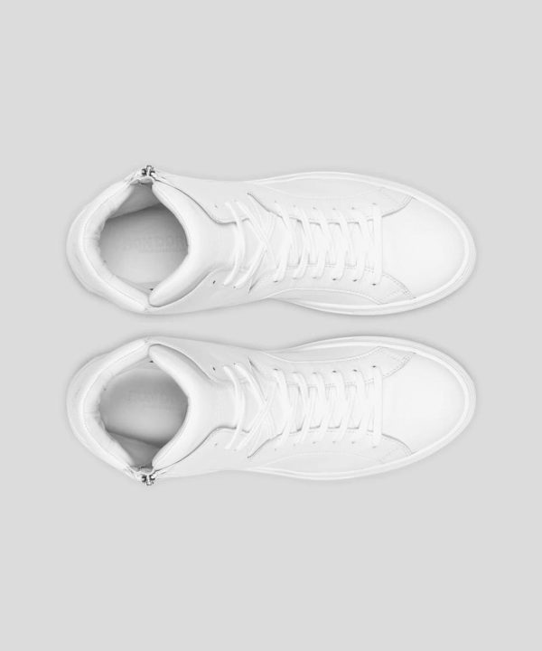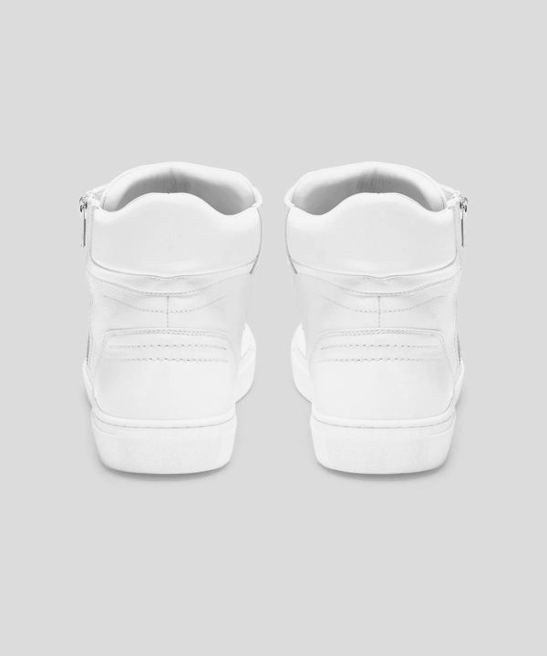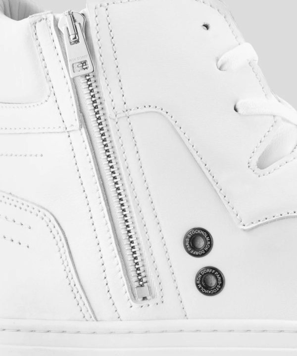 The iconic all-white hi-tops hand-crafted in the finest calf leather. Flat laces combined with slip-on/slip-off, Swiss-Made metal zippers on the sides for ease and comfort. Only sign of recognition, the two discrete black-lacquered RD eyelets on the side. 100% handmade in Portugal.