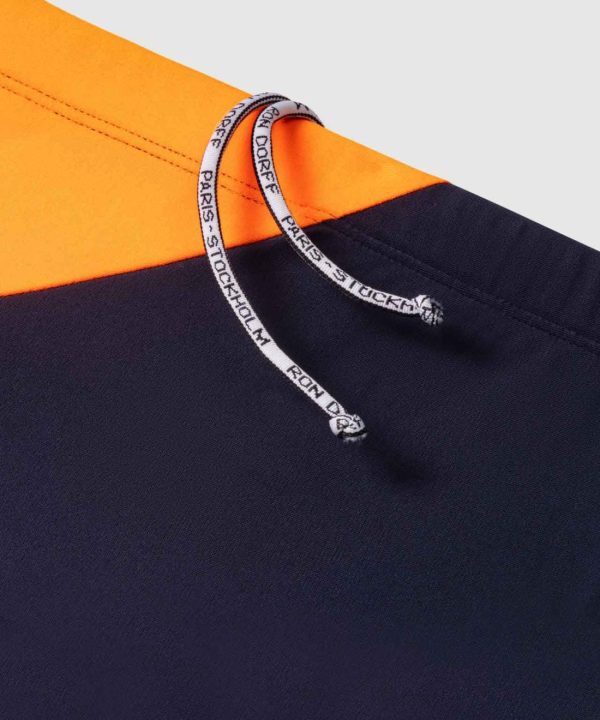 The iconic RD Swim Briefs are now available in a new, late 80s inspired high-cut version with a side width of 5,5 cm vs the 8 cm on the classic version. The bicolor design adds a vintage touch. Made in extra-thick but quick-drying Italian-made polyamide for optimized silhouette and guaranteed fit swim after swim. Breathable micro-mesh lining. Elastic waistband with interior drawstring. Ideal for frequent pool use. Featuring the double black-lacquered RD signature eyelets guaranteeing an original tan after long day at the beach.