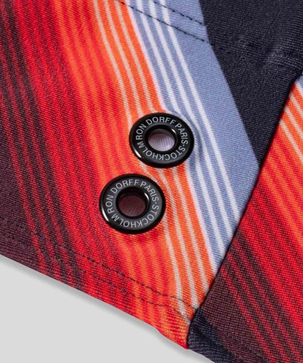 This model is inspired by the cult Brazilian water polo briefs of the early 80s, the swim briefs is revisited with diagonal stripes for a vintage look. Made in an extra-thick but quick-drying Italian-made polyamide for optimized silhouette and guaranteed fit swim after swim. Breathable micro-mesh lining. Elastic waistband with interior drawstring. Ideal for frequent pool use. Featuring the double black-lacquered RD signature eyelets.