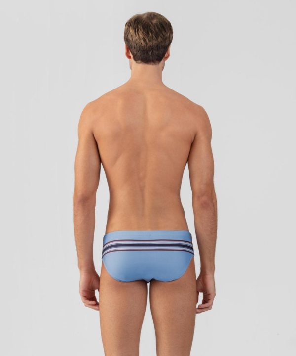 This model is inspired by the cult Brazilian water polo briefs of the early 80s, the swim briefs is available with stripes at waist level. Made in an extra-thick but quick-drying Italian-made polyamide for optimized silhouette and guaranteed fit swim after swim. Breathable micro-mesh lining. Elastic waistband with interior drawstring. Ideal for frequent pool use. Featuring the double black-lacquered RD signature eyelets.