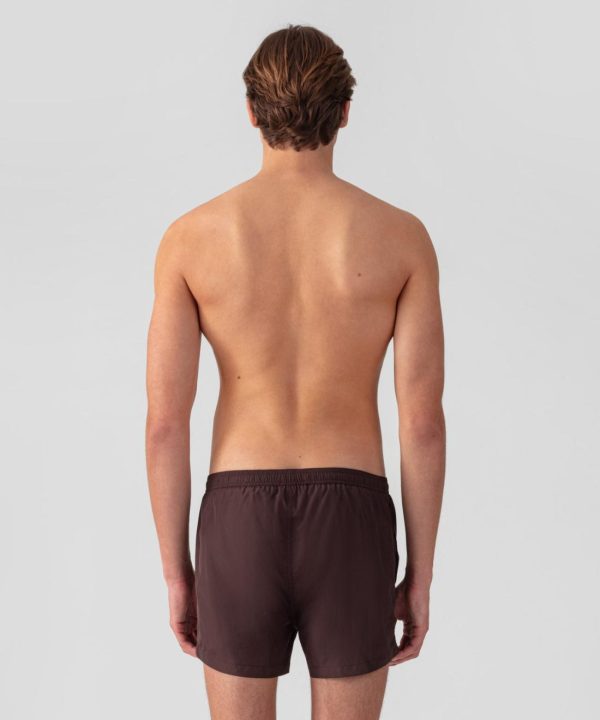 The RD Swim Shorts inspired by the model worn around the Mediterranean in the early 80s. Upgraded in an Italian recycled, light-weight and quick-drying polyester offering UV and chlorine protection. Breathable micro-mesh lining. Tailored fit, short legs and side slits for an enhanced silhouette. Elastic waistband with adjustable drawstrings. Side pockets and interior key pocket. Featuring the double black-lacquered RD signature eyelets.