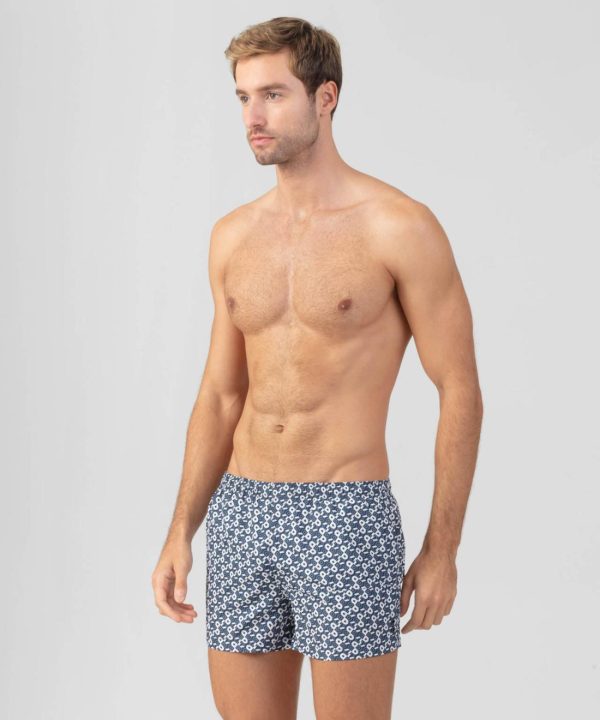 The RD Swim Shorts inspired by the model worn around the Mediterranean in the early 80s. Upgraded in an Italian recycled, light-weight and quick-drying polyester. Offering UV and chlorine protection. Breathable micro-mesh lining. Tailored fit, short legs and side slits for an enhanced silhouette. Elastic waistband with adjustable drawstrings. Side pockets and interior key pocket. Featuring the double black-lacquered RD signature eyelets on the side.