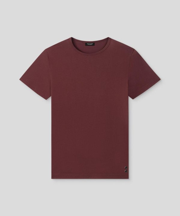 The classic no frills, no logo, RON DORFF t-shirt revisited in a 100% ultra-soft cotton. Designed with a slightly tapered fit. Crew neck with elegant binding collar for chic urban wear. Featuring the two discrete black-lacquered RD eyelets on the side.