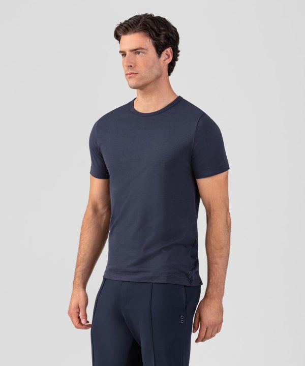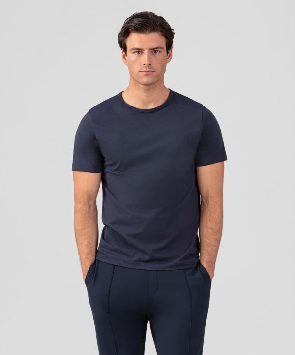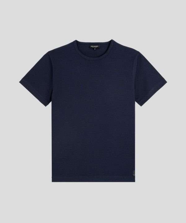 Men T-Shirts | Ron Dorff Crew Neck T-Shirt Eyelet Edition Navy