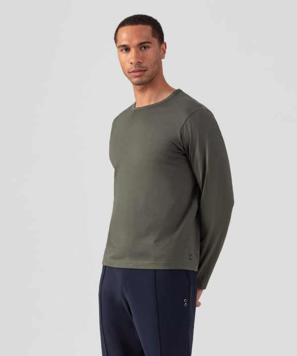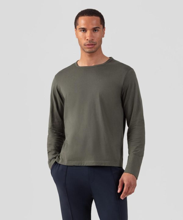 Men T-Shirts | Ron Dorff Long Sleeve T-Shirt Eyelet Edition Military Green