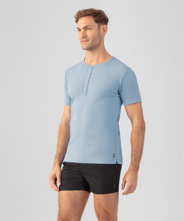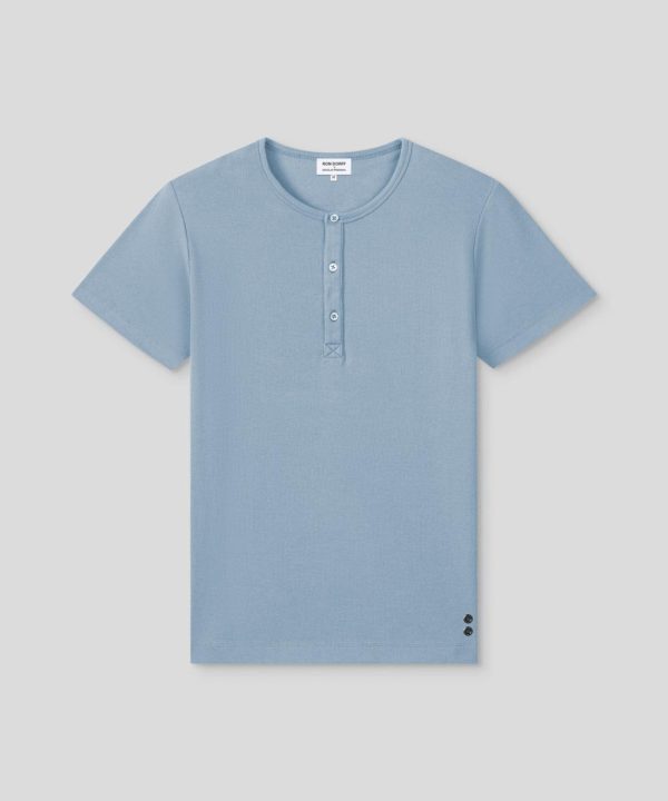 The new RON DORFF T-shirt is inspired by the iconic outfits of cowboys. Designed with a slightly tailored fit in premium organic cotton blended with a touch of elastane for improved shape retention. Featuring a Tunisian neckline with natural mother-of-pearl buttons. Pre-washed to ensure minimal shrinkage.