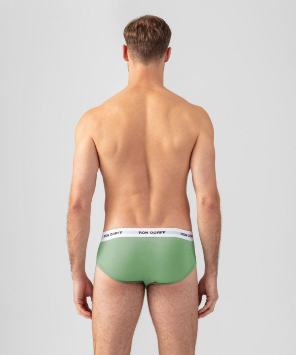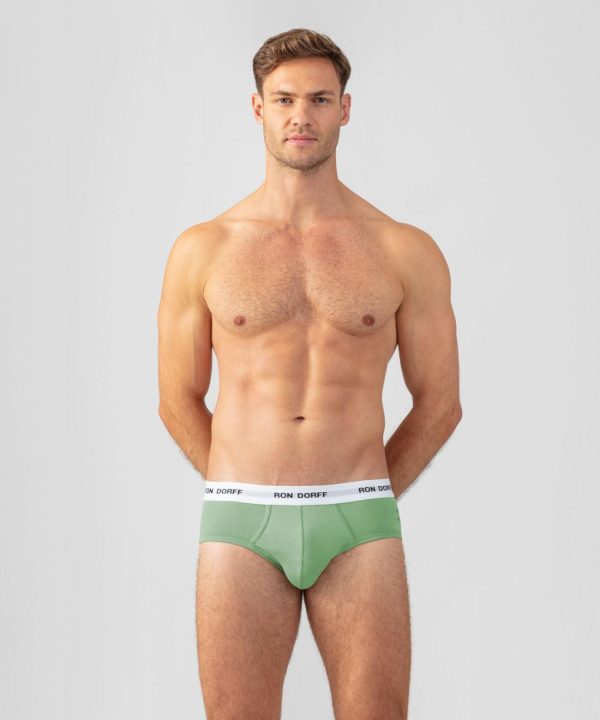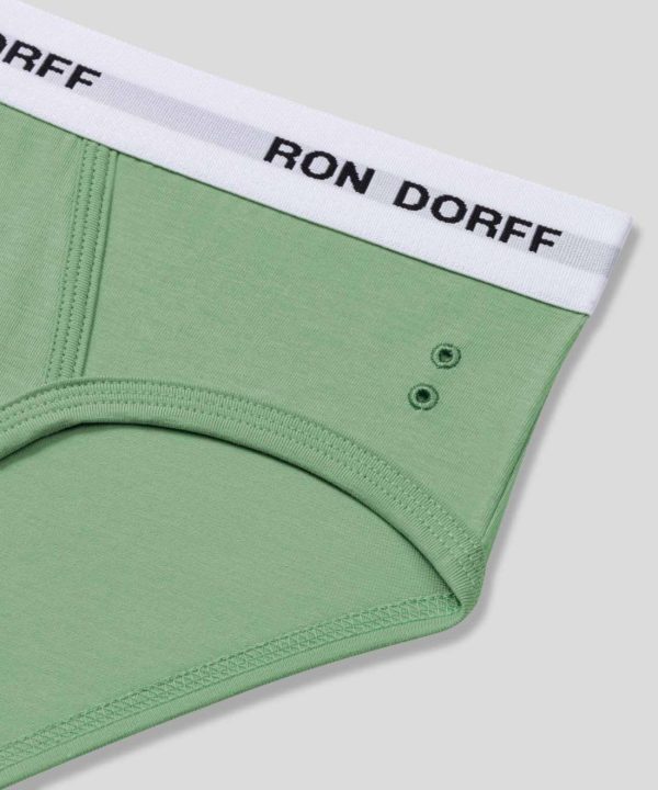 The new RON DORFF Y-front briefs with a visible, white, elastic waistband branded RON DORFF in black. Designed with a tapered fit and cut in the finest cotton jersey with a hint of elastane for a guaranteed fit wash after wash. Fly opening for maximum convenience. The two discrete, RD eyelets embroidered tone-on-tone on the side.
